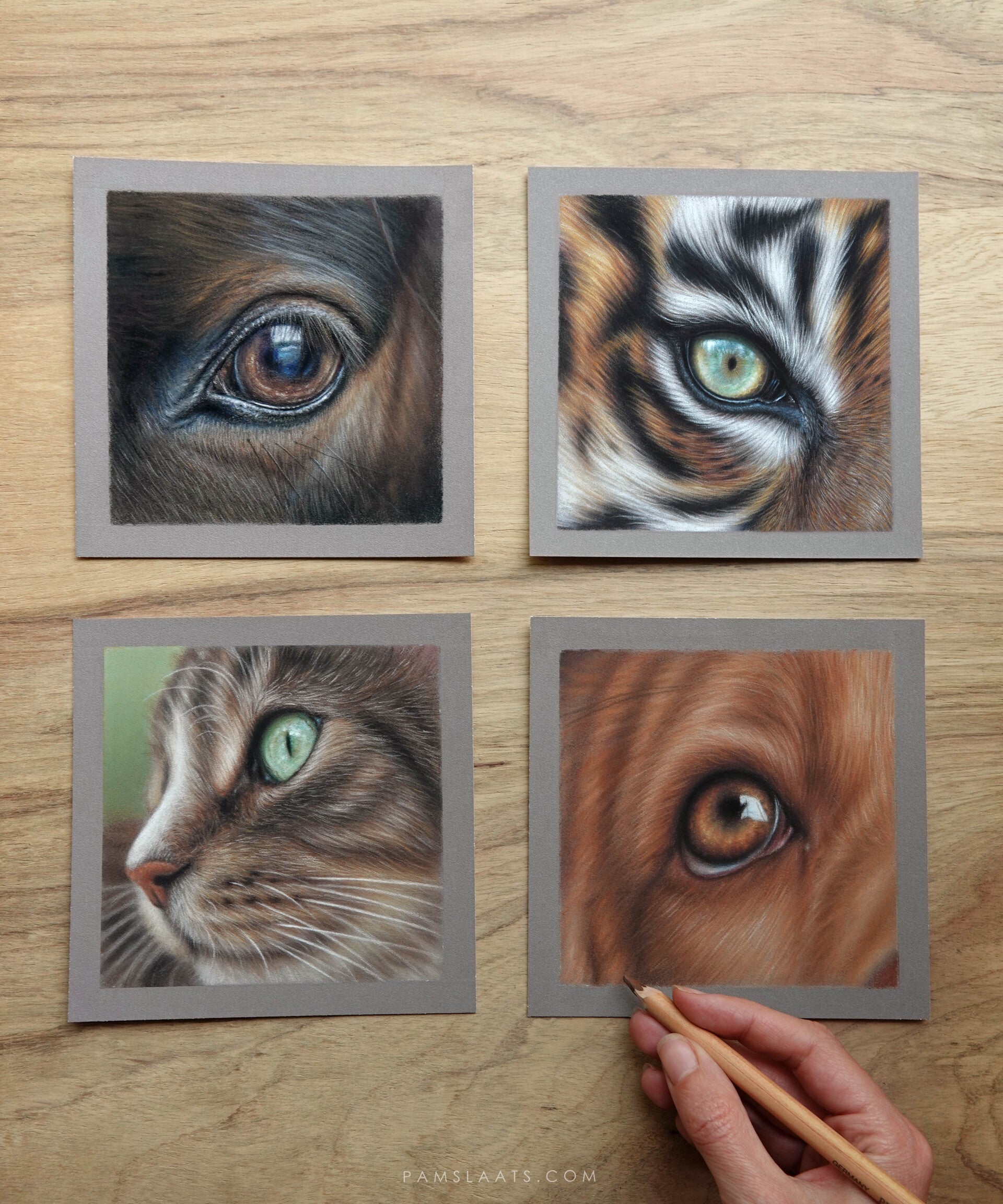 Tijdens deze workshop leer je hoe je sprekende ogen en een zachte, realistische vacht tekent met pastel potlood.